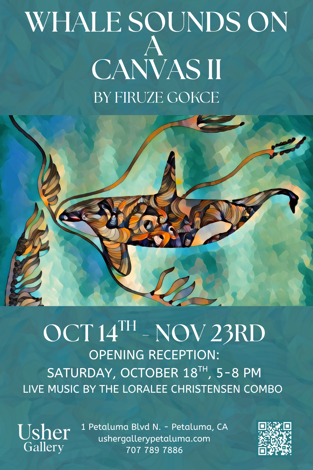 Join us for an opportunity to meet the artist, Firuze Gokce, while grooving to live tunes by The Loralee Christensen Duo and admiring her oceanic art! Enjoy delicious refreshments provided by Usher Gallery, and browse a curated collection of local art and handmade treasures.